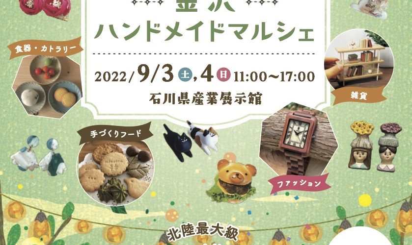 お知らせ / 金沢ハンドメイドマルシェ出展のお知らせとおしながき (2022年9月3-4日開催)