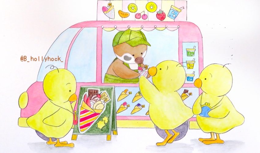 イラスト 12 / ひよこの3兄弟 -町のクレープ屋さん- (クレープの日)